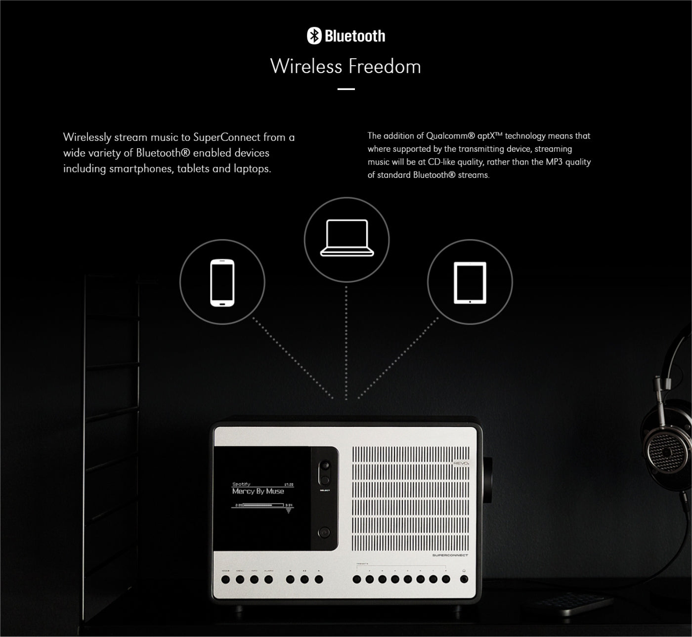 Latest revision SuperConnect with 'Airstream' includes compatibility with additional subscription streaming services Amazon Music, Deezer, Qobuz and Spotify Connect.