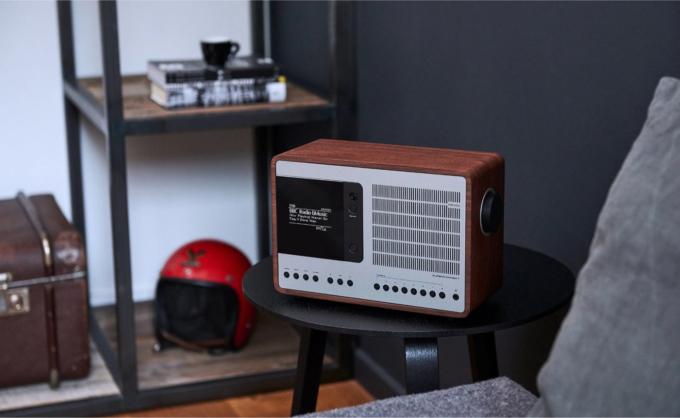 The Revo SuperConnect's sleek retro design hides the latest in radio and multimedia technology. The radio is suitable for receiving DAB+/FM and Internet radio.